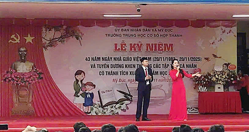 Mở đầu buổi lễ là chương trình văn nghệ đặc sắc do giáo viên và học sinh biểu diễn. Những bài hát ca ngợi nghề giáo, ca ngợi mái trường vang lên, tạo nên bầu không khí xúc động và đầy màu sắc. Đây cũng là lời tri ân chân thành gửi đến các thầy cô đang ngày đêm miệt mài gieo chữ.